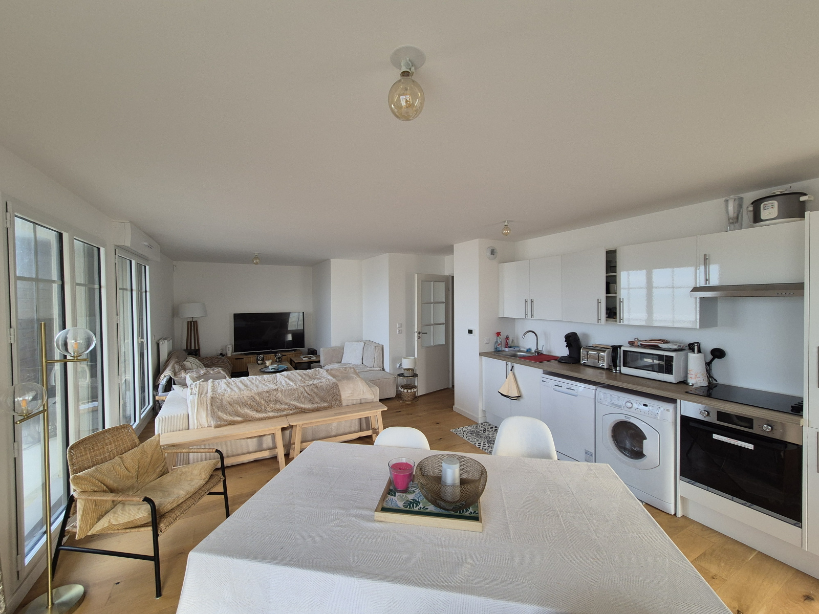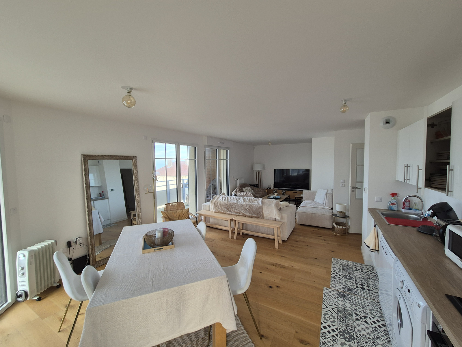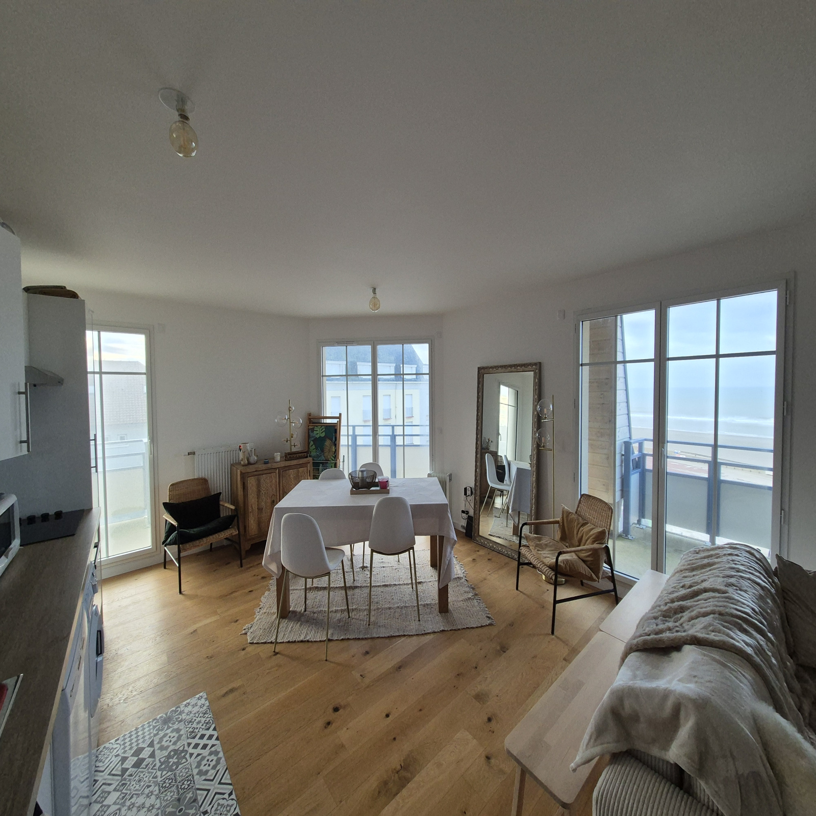 Appartement plein centre des commerces et vue mer ... neuf, tout confort, 62m² se compose : d'une entrée, une chambre, une salle d'eau, un WC et un sélon séjour avec cuisine équipée face mer ... possibilité d une seconde chambre comme sur le plan d'origine ... un balcon de 26m² vous permettra de profiter des atouts de la station.