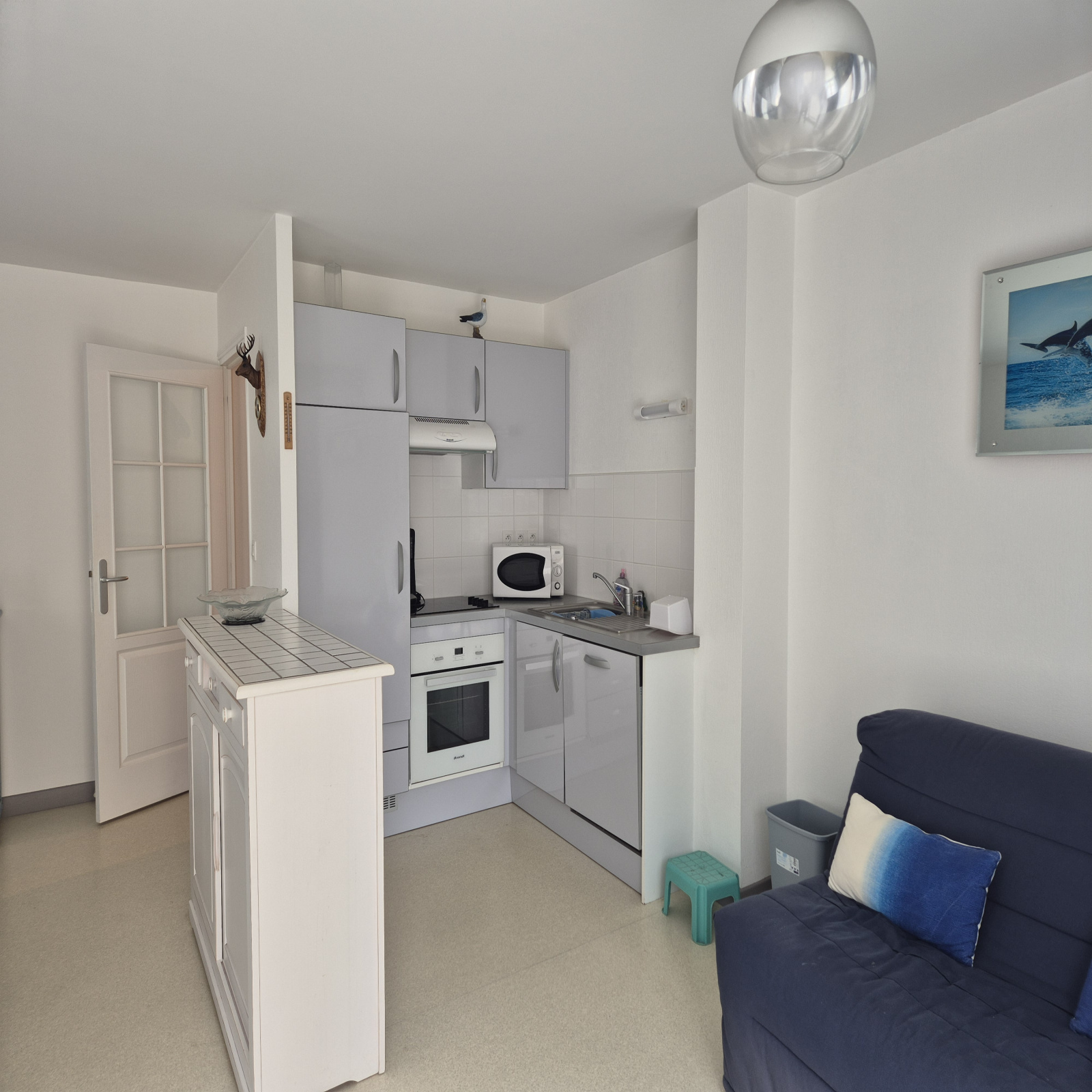 Charmant appartement proche de la plage comprenant : une entrée, un WC, une salled de bains, 2 chambres, un salon / séjour avec coin cuiisne de 32m² ouvrant sur un balcon.