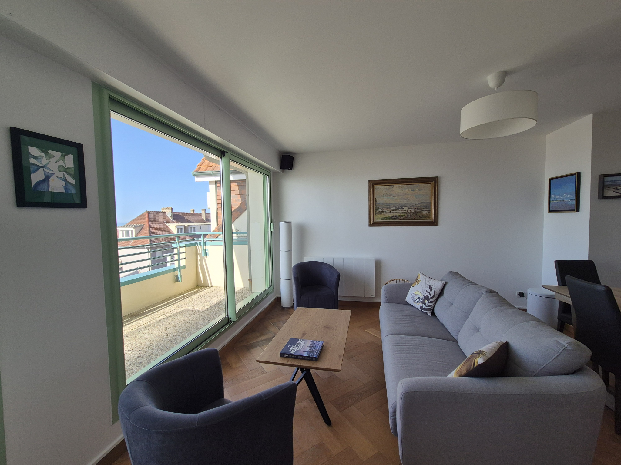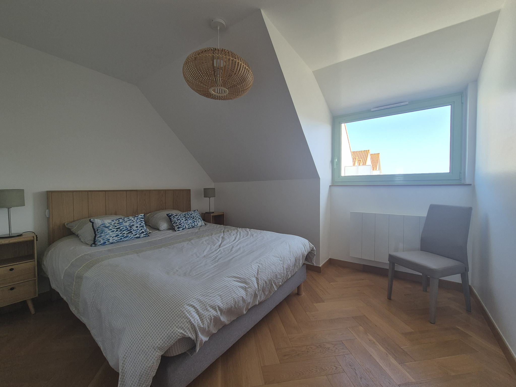 Au bord de mer ce magnifique duplex T3 cabine de 67m² loi carrez (78m² au sol), comprend : une entrée distribuant : une salle d'eau avec Wc, une chambre vue dune, un salon séjour avec cuisine équipée ouvrant sur un balcon exposition ouest ou il vous suffira d'admirer les couchers de soleil, à l'étage : un palier, 1 chambre vue mer, une salle d'eau avec Wc et une cabine .