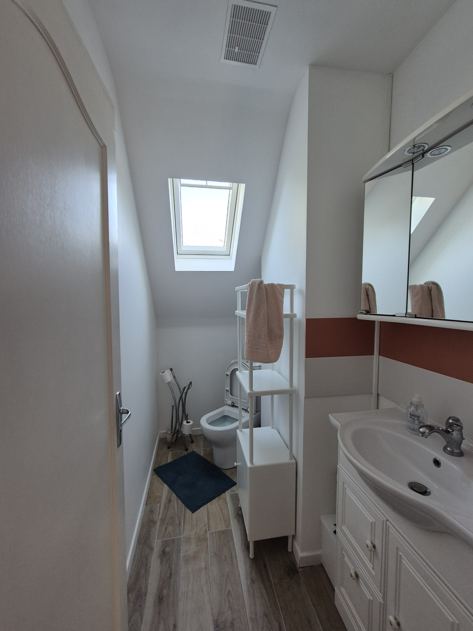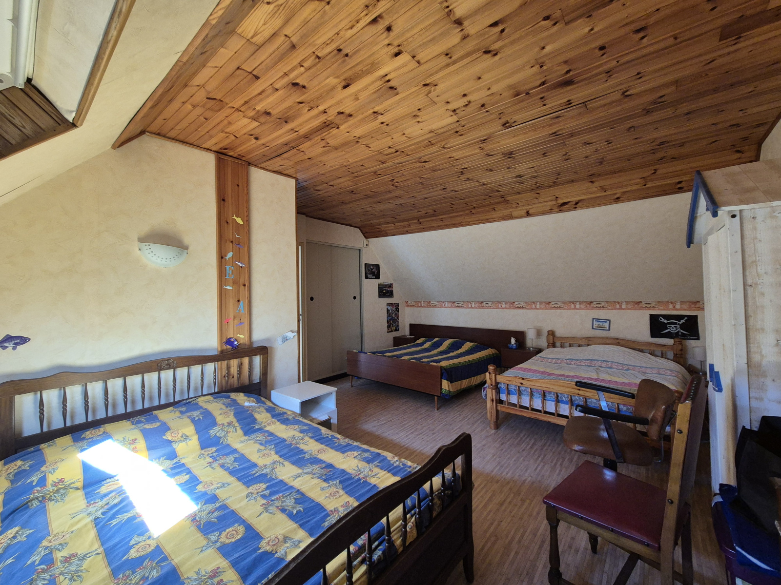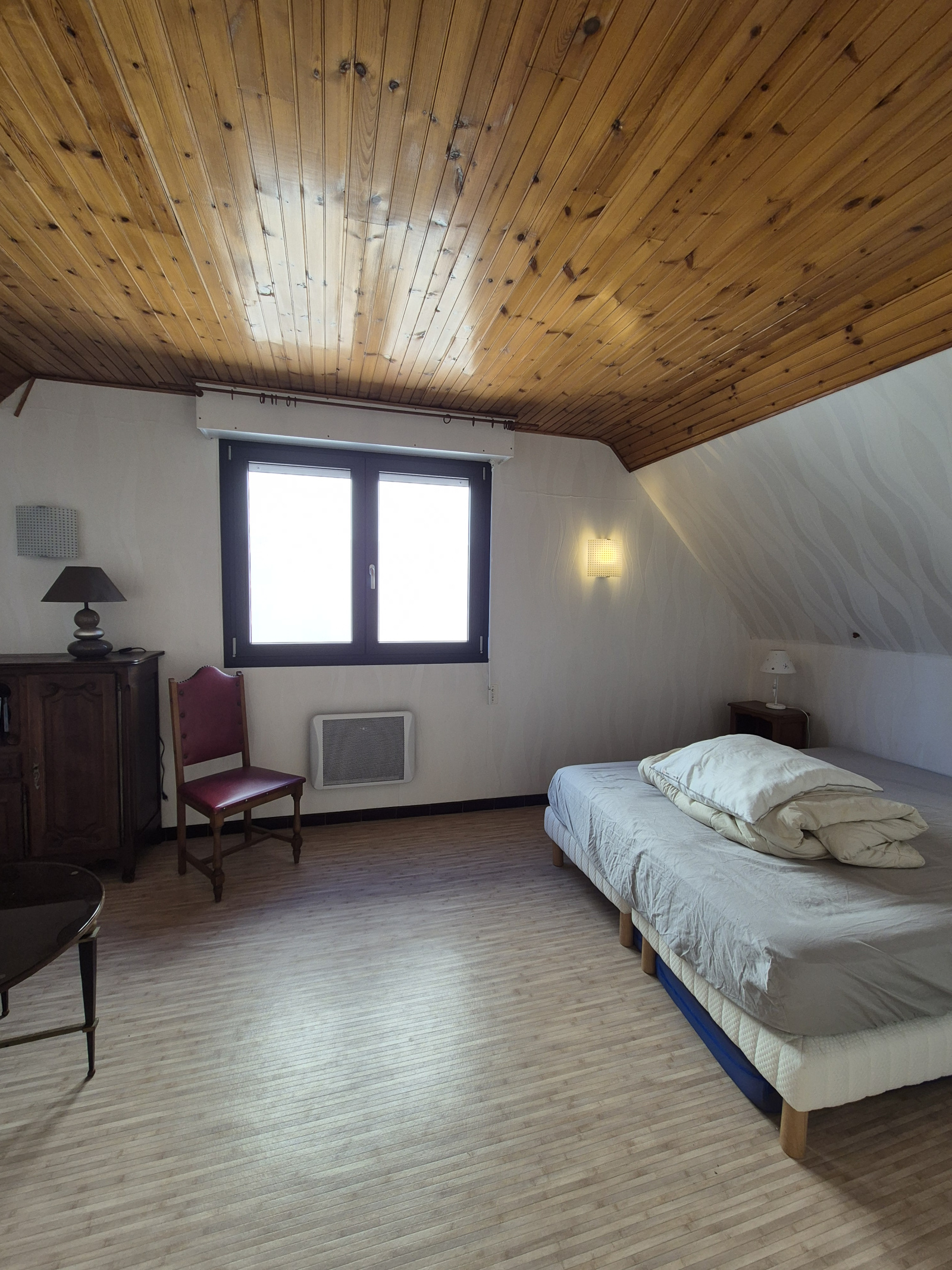A l'étage : un palier, 2 chambres, un WC et une salle d'eau. attenant un garage.