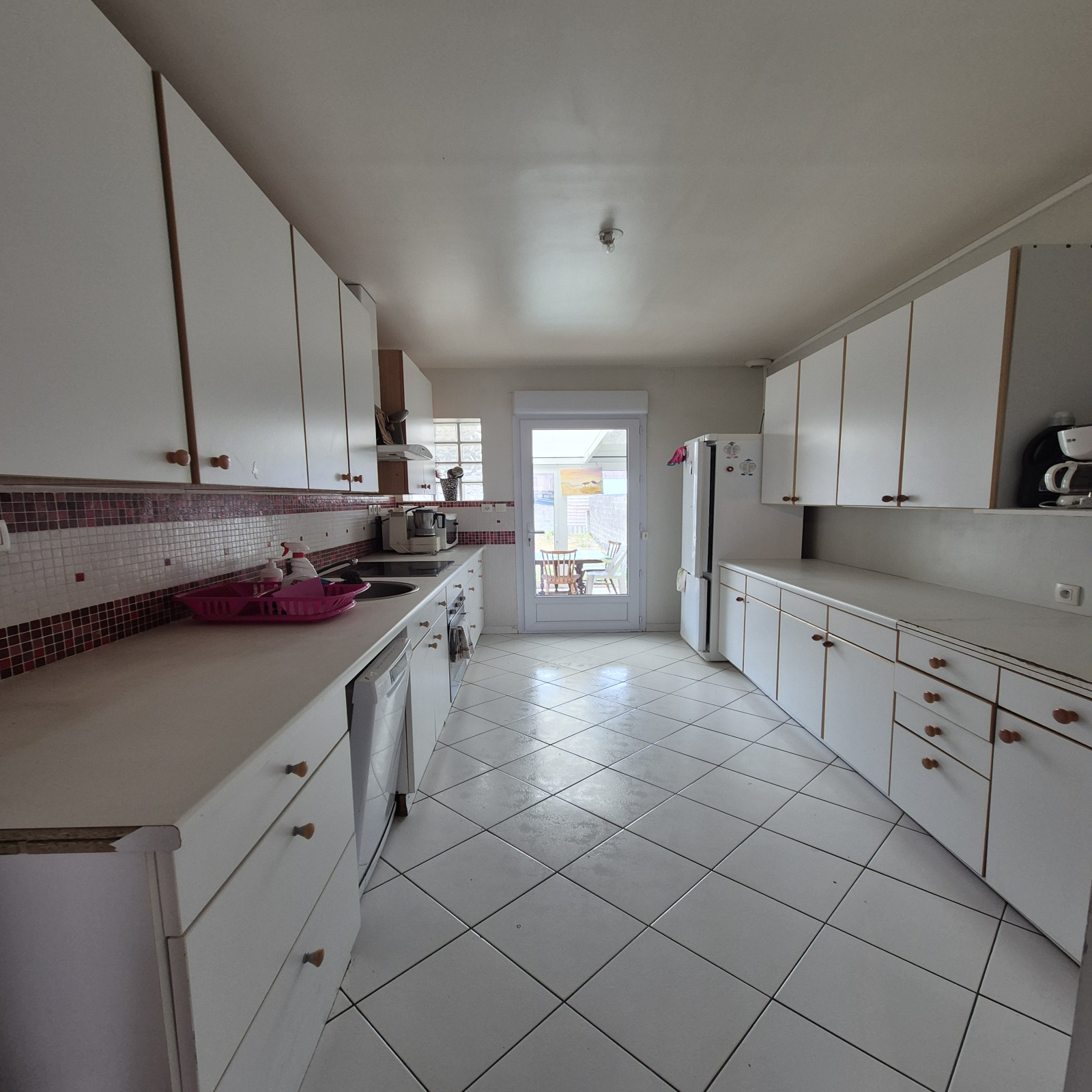 Cette maison de 170m² comprend : une entrée, un séjour de 41m², une cuisine, un couloir distribuant : une salle de bains, un WC, une chambre, une véranda. A l'étage : un palier, 4 chambres avec de beaux volumes, une salle d 'eau avec WC.