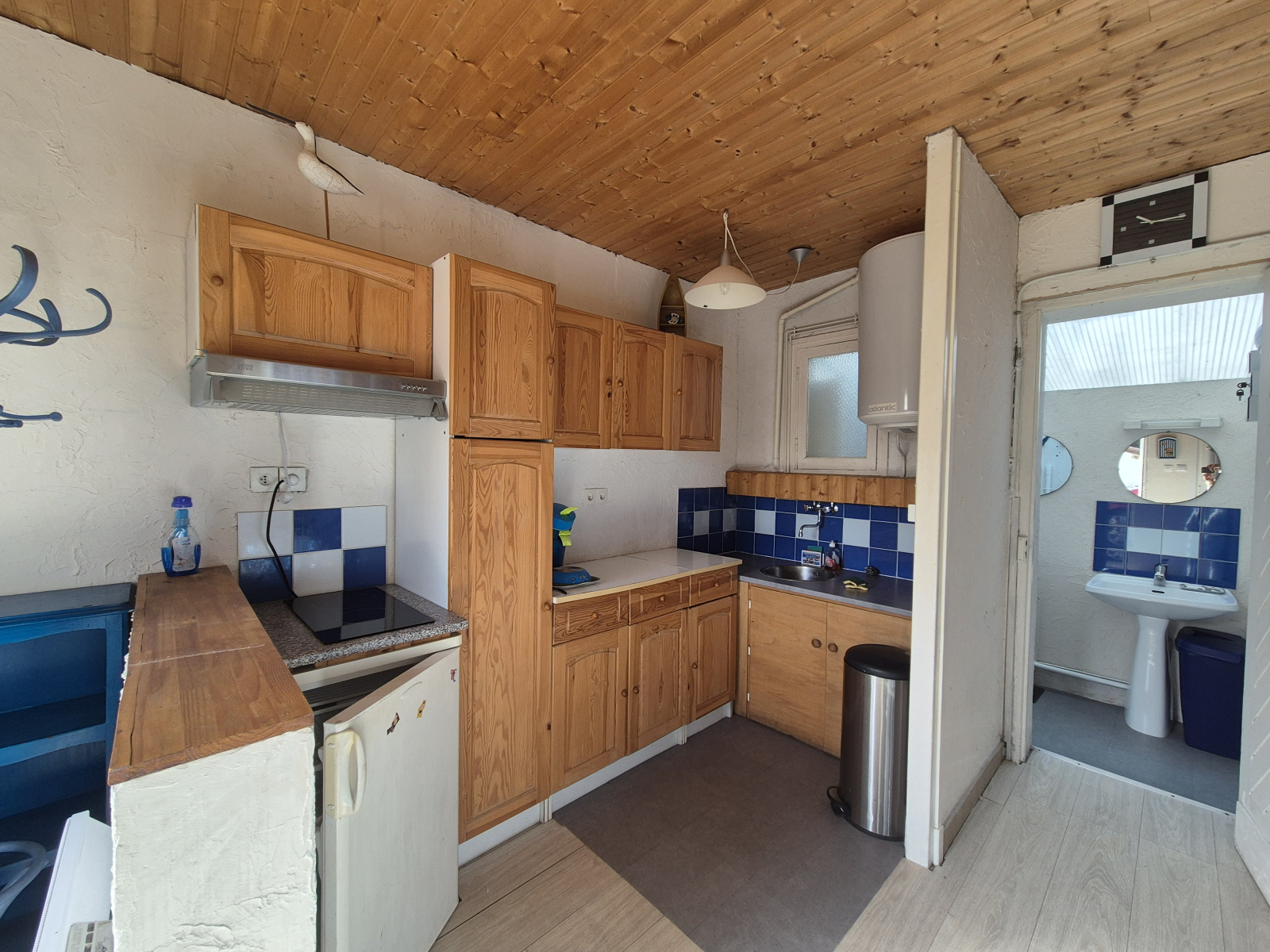 Mer & Campagne vous propose cette petite maison idéale pour avoir un petit pied à terre au bord de mer ... elle comprend un séjour avec coin cuiisne de 20m², une salle d'eau avec WC et à l'étage une grande chambre ...
